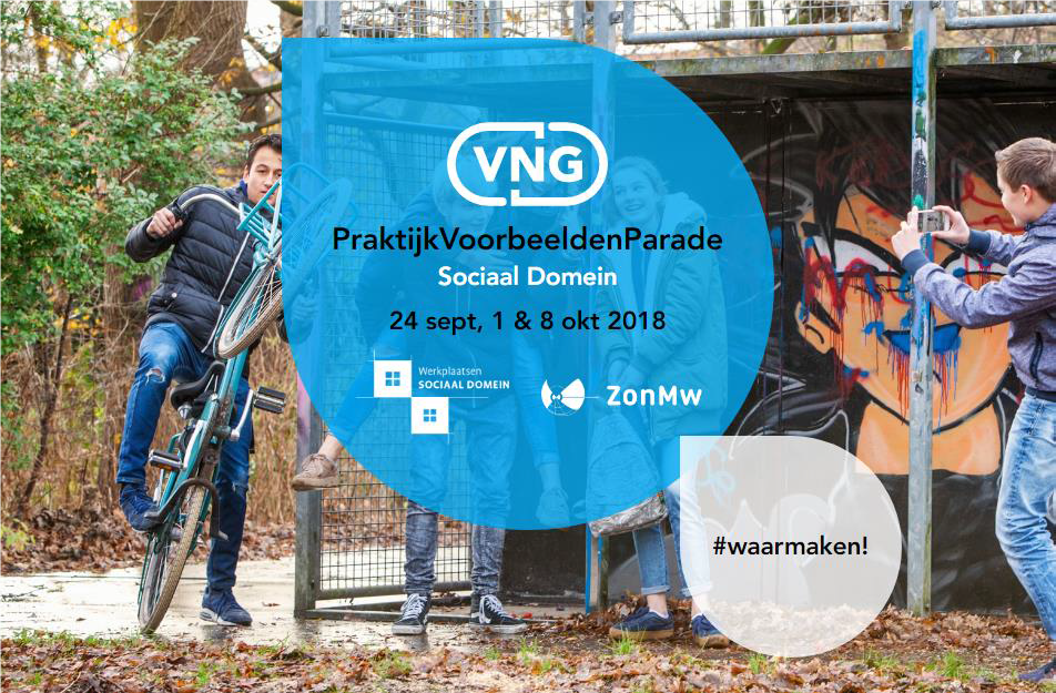 In het najaar van 2018 organiseert de Vereniging van Nederlandse Gemeenten, in samenwerking met de Werkplaatsen Sociaal Domein en ZonMw voor de eerste keer de PraktijkVoorbeeldenParade Sociaal Domein. Drie regionale dagen waarin gemeenten en hun maatschappelijke partners een podium krijgen om aan elkaar te laten zien wat zij waarmaken van de transformatie in het Sociaal Domein. Op 8 oktober 2018 in Zwolle!